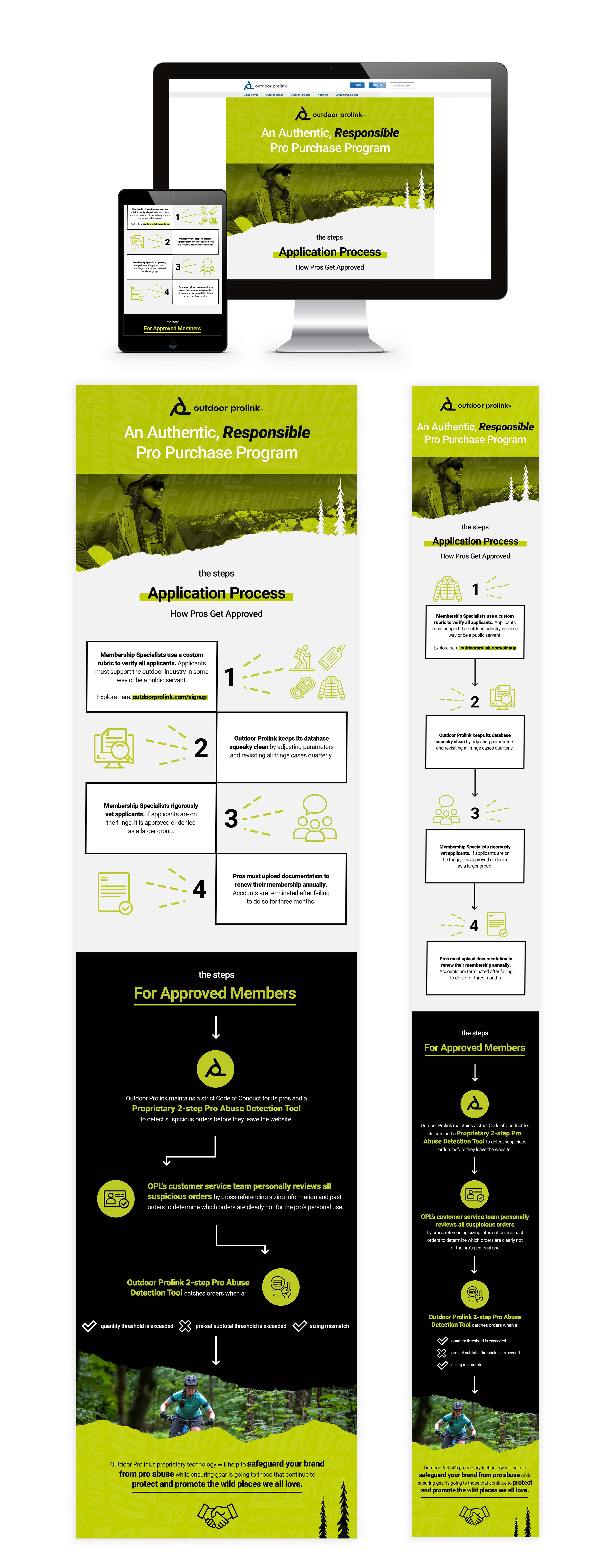 This particular project was a case study showing the relationship between retailers and outdoor industry professionals. Landing page and downloadable PDF design.