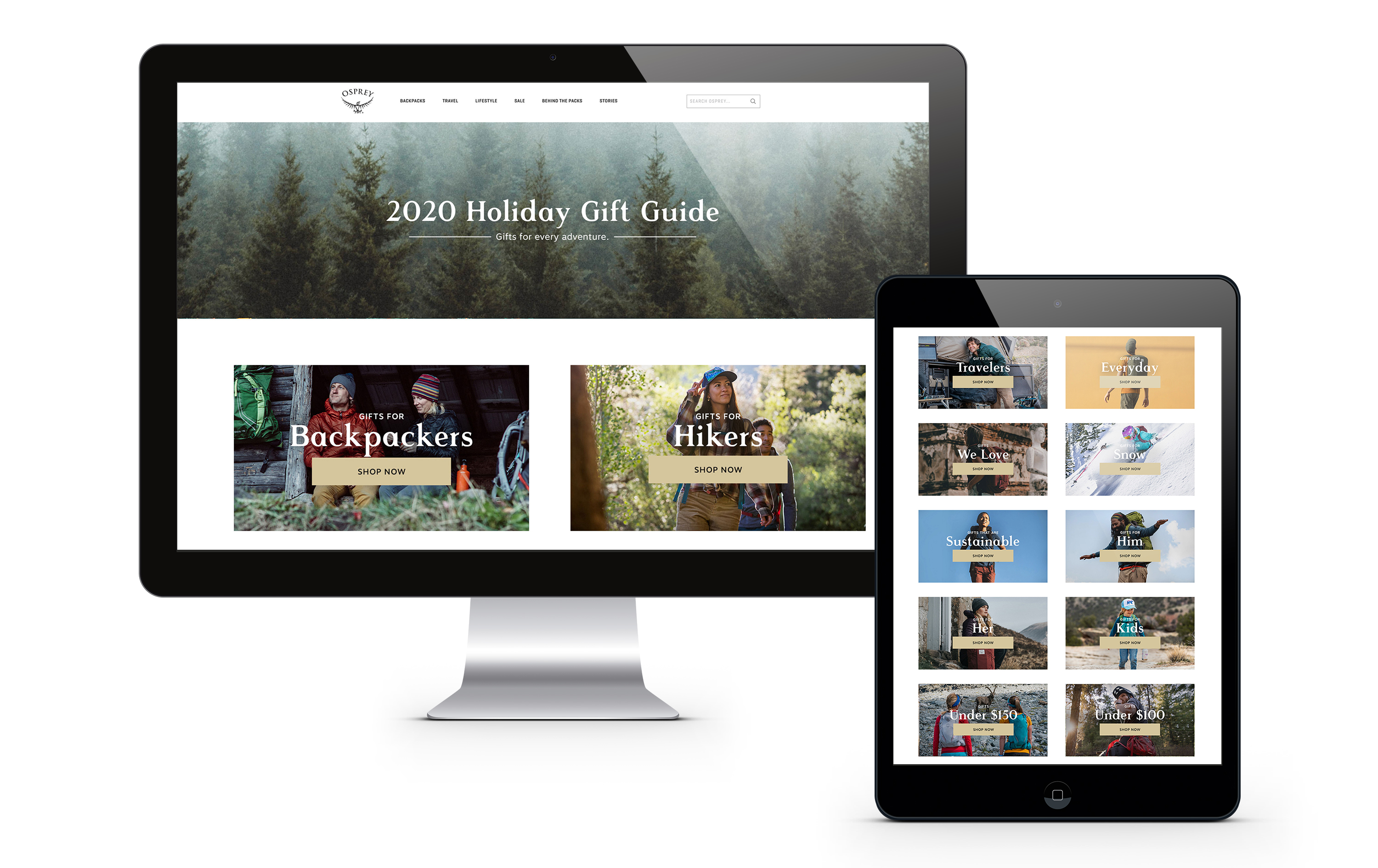 Osprey Packs Holiday Gift Guide's for the '22, '21 and '20 seasons. Copywriting: Beth Puliti